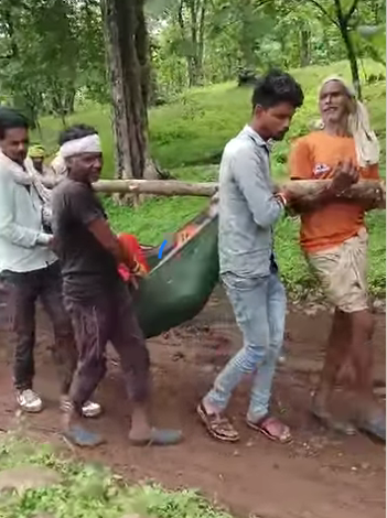 हरदा जिले में प्रेग्नेंट महिला को कपड़े की झोली में टांगकर ग्रामीणों ने पहुंचाया अस्पताल, पर क्यों.?