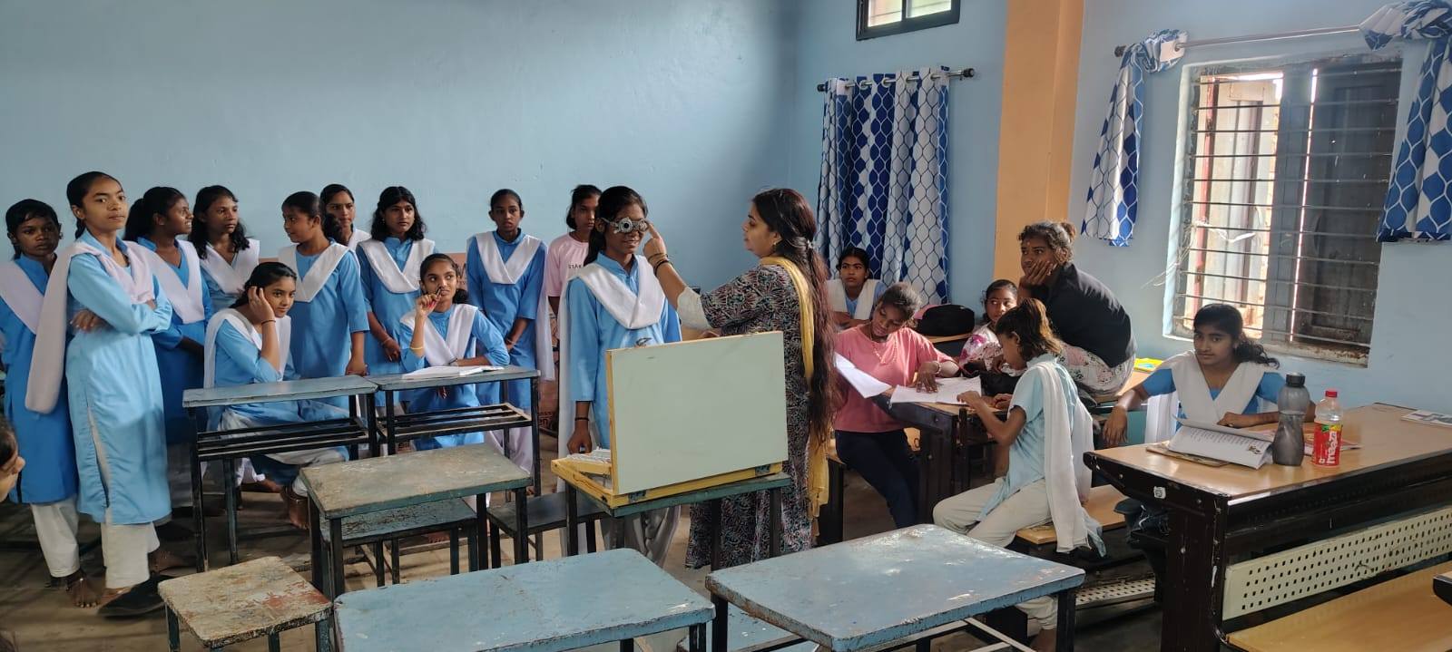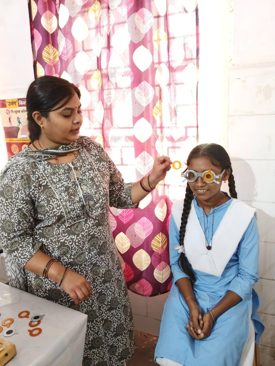 उसके बाद कार्यक्रम के नियम अनुसार स्वास्थ्य केन्द्रों में लाकर दृष्टि दोष से पीड़ित बच्चों का सफल परीक्षण करवाया गया. स्वास्थ्य केंद्र पर नेत्र सहायक के द्वारा दृष्टि दोष से पीड़ित बच्चों को चश्में के नम्बर प्रदाय किए गये.